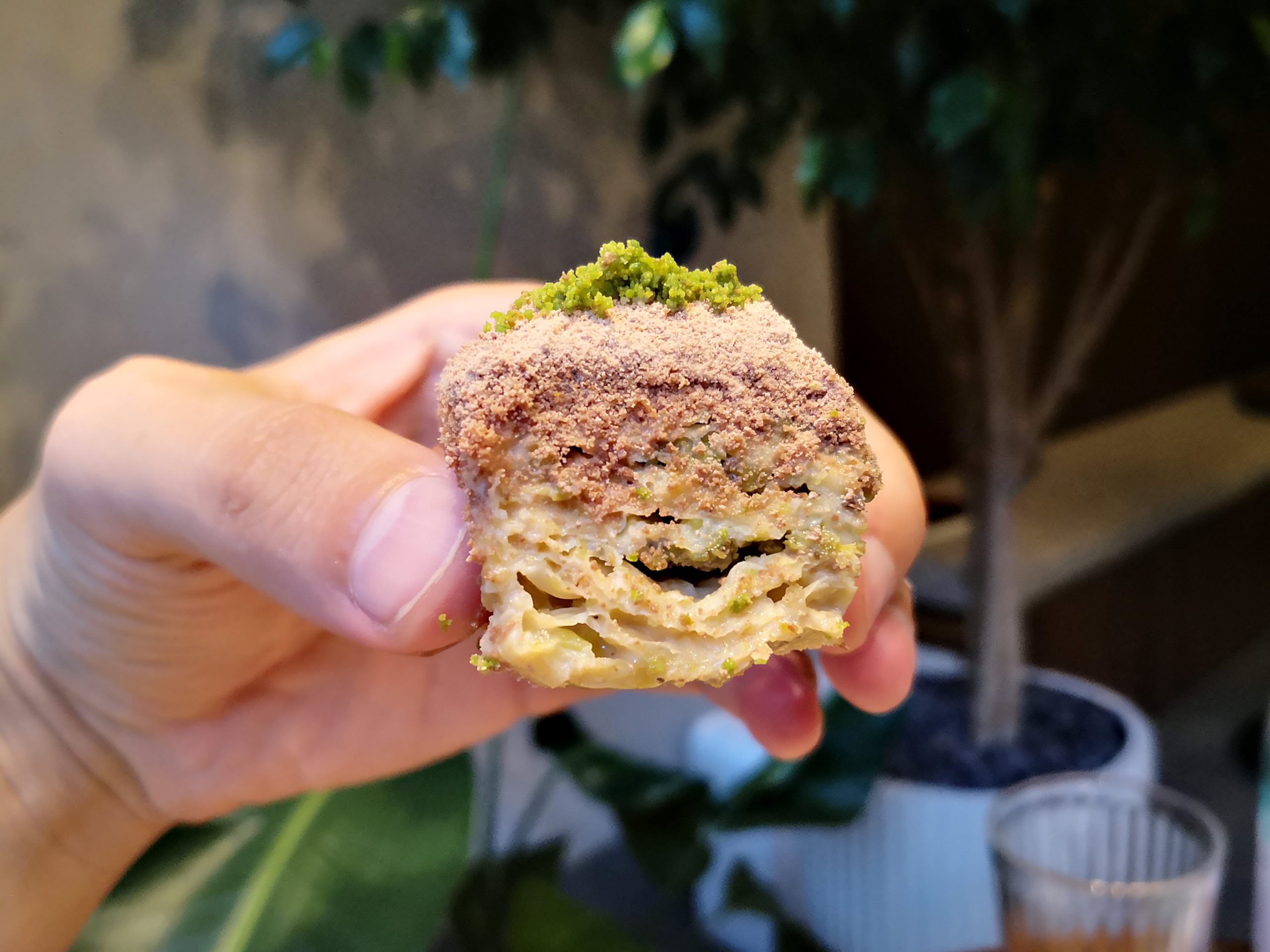 Lesne de înțeles că m-am bucurat de toate. La final, de departe, baklavaua mea preferată de la Halef s-a dovedit a fi Bitter Rolla, cu ciocolată neagră, fistic, lapte și unt. Simplă, gustoasă, aromată și dulce atât cât e necesar. Perfectă în combinație cu un espresso intens. Am lăsat mai jos o fotografie cu ea și suratele dumneai. Enjoy!